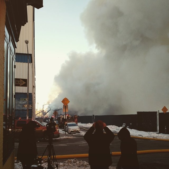 Around 6:30 a.m. the department was called back to the building. By the time they got there, the warehouse was ablaze. The building’s steel frame and roof and its lack of windows made it difficult for firefighters get water to the fire, and brutal winds fed the flames; 275 firefighters were sent to try to control the inferno.